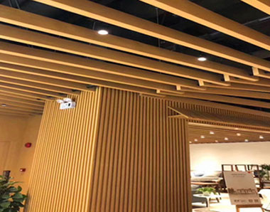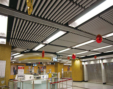 2023-03-021 、格柵天花。格柵天花組合靈活:用鋁格柵與鋁框架組合,安裝后更具有設計獨特、造型新穎的特點,格柵天花主骨和副骨頂部內向...
